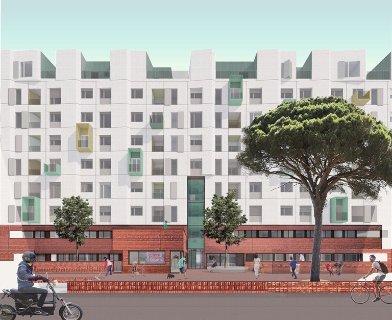 Le azioni sull’involucro edilizio e sugli spazi aperti [strategie 5 e 6] mirano inoltre al comfort abitativo ed ambientale: le facciate sono ripensate dal punto di vista prestazionale ma anche compositivo, le coperture offrono nuove occasioni di attività e aumentano la volumetria a disposizione mentre consentono una riduzione del dispendio energetico, gli spazi aperti si differenziano e articolano rispetto al loro carattere pubblico mediando tra il costruito e l’ambiente circostante mentre contribuiscono alla resilienza del territorio e alla mitigazione del cambiamento climatico.